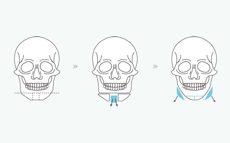 아래턱 턱 끝의 길이를 줄이거나 앞뒤로 움직여 턱뼈의 위치를 옮기는